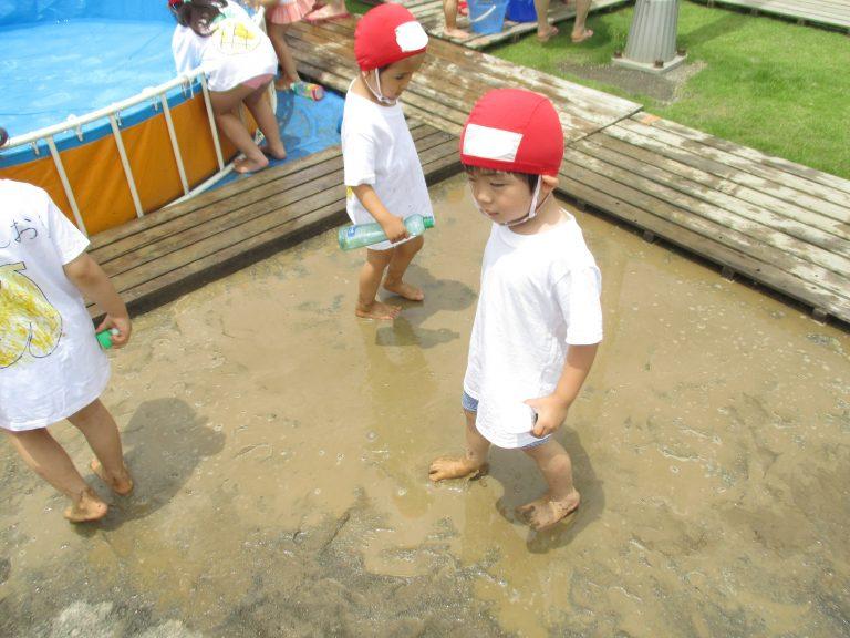 泥んこ水に足を突っ込んで感触を楽しむ子もいました♡