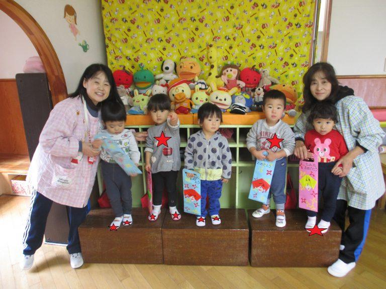 いちごぐみさんも前もってみんなで作った袋に千歳あめを入れてもらって、「ハイチーズ♪」