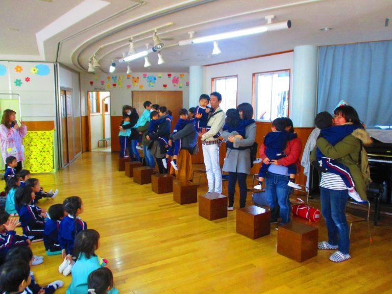 大好きなお父さんお母さん達からはハグのプレゼントをもらい、園庭での自由遊びの時間は寒い中でしたがみんな一緒に遊んでもらいました。
