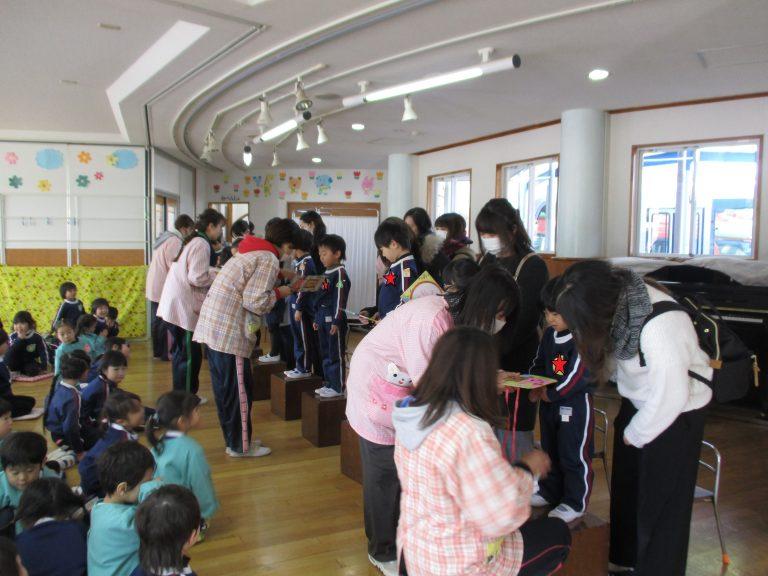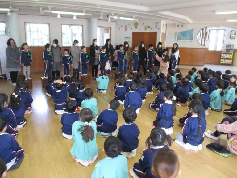 みんなから言葉のプレゼント・歌のプレゼントをもらい、担任の先生からは絵本のプレゼントを頂きました。