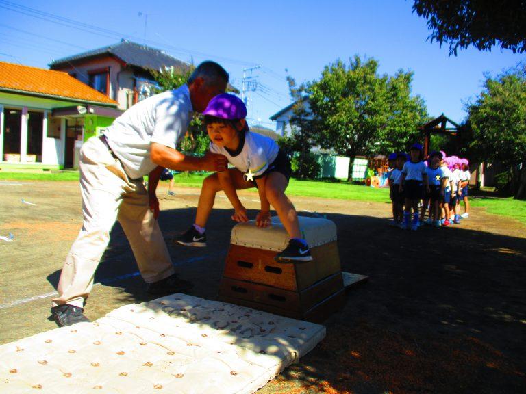 園長先生指導の下、年長さんは跳び箱の練習を毎日のようにしています。