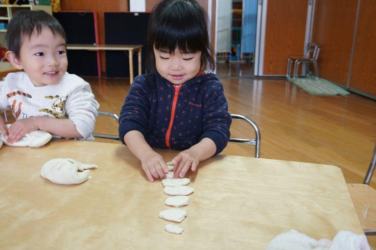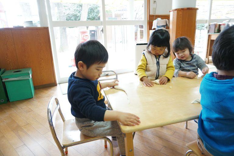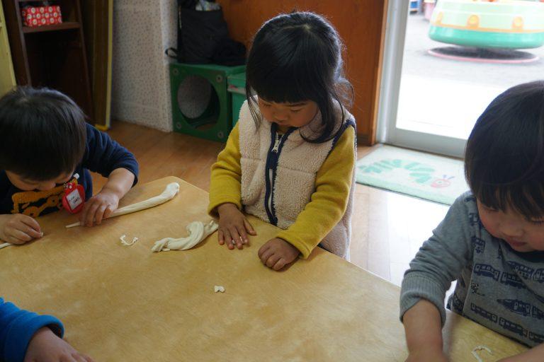 そんな中で今週は小麦粘土でお餅ぺったん遊びをしました♪♪