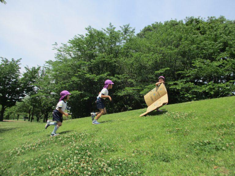 今日はとても良いお天気の中、みんなで土手すべりにお出かけしてきました。