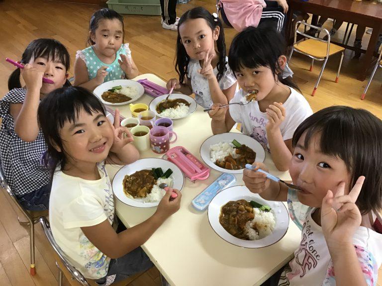 先生やお友達と遊んだり、カレーを食べて楽しい時間を過ごしました。