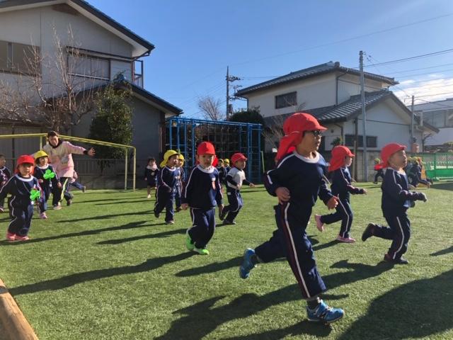 1日の始まりに元気いっぱい体操をして皆んなでマラソンをします!