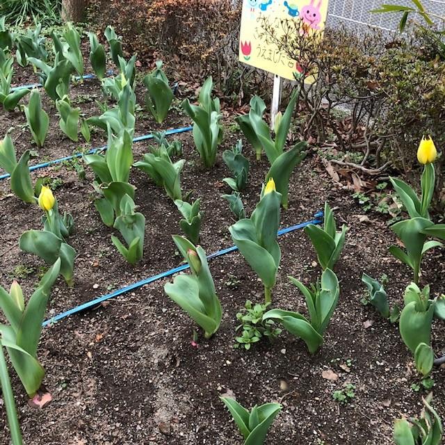 みんなで植えたチューリップも早いものは咲いてしまいそうです✨